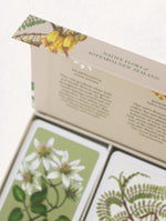 Features: The back of the cards display paintings of the Kowhai and Clematis flowers. The beautifully presented box has a hinged magnetic lid. On the underside of the lid is written information about each plant.